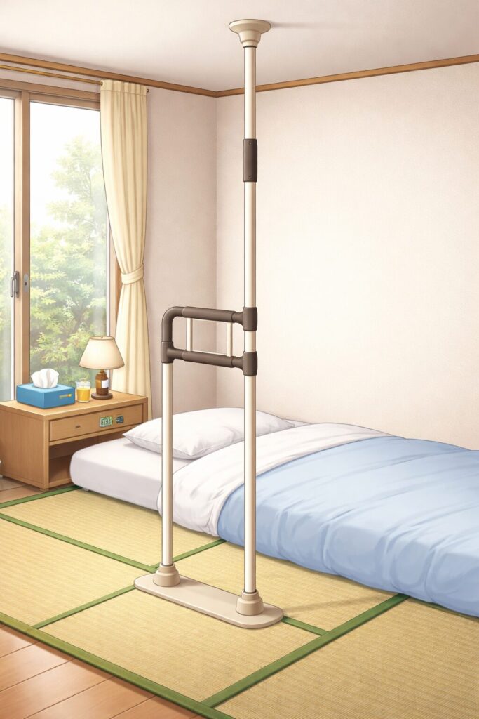 手すりにつかまることで体を安定させることができ、起き上がりや立ち上がりが楽になります。