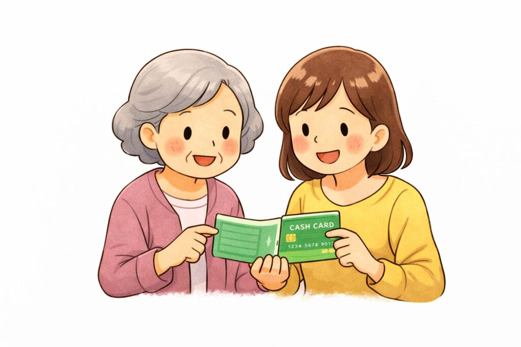キャッシュカードを作ると夕方でも土日でもお金の引き出しできるから、